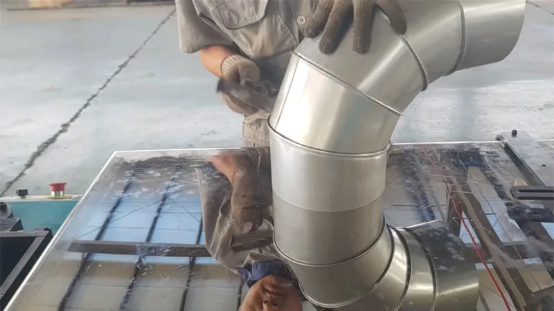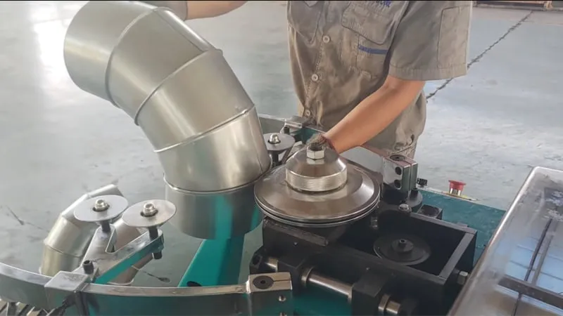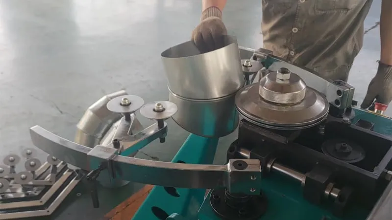 يمكن للماكينة تصنيع أكواع المجاري بسماكة 0.5-1.2 مم، وتعتمد تصميمًا ذو هيكل مدمج. كما يمكنها إنتاج أكواع بزاوية 90 درجة في 5 مقاطع. وباستبدال أسطوانات التشكيل، يمكن أيضًا إجراء الترصيعة (التجعيد) وتشكيل الختم على الأنابيب، لتحقيق وظيفة متعددة الاستخدامات.
